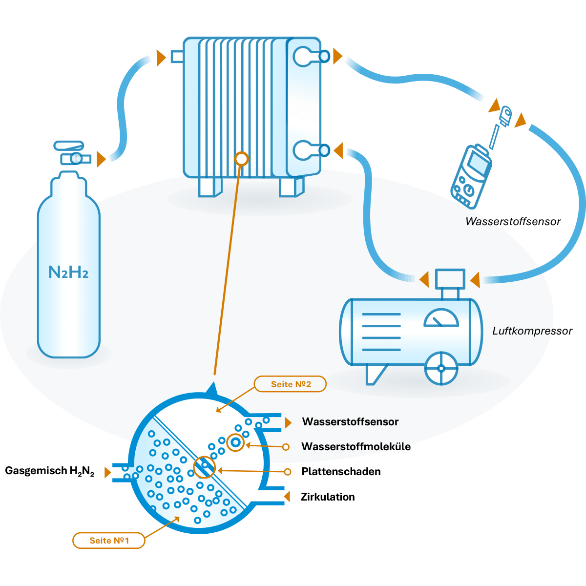 - Wenn eine Platte beschädigt ist, dringen Wasserstoffmoleküle an der Leckstelle in den Bereich der Luftzirkulation ein.