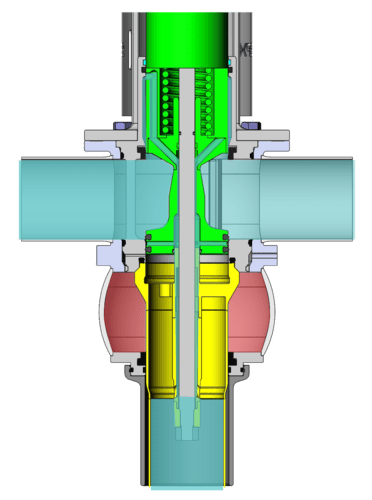 Double seat mixproof valves are designed to enable the safe and simultaneous flow of two different fluids—typically product and CIP—while preventing any risk of cross-contamination. In the fail-safe closed position, the D4PMO valve’s two seats isolate the upper and lower pipelines.