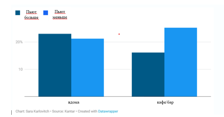 Отчет «Покупки алкогольных напитков» обнаружил, что за последние 12 месяцев 23% потребителей пили больше дома, по сравнению с 16%, которые пили больше в заведениях общественного питания. Однако, потребители в целом сокращают потребление алкоголя: 21% сообщили, что они выпили меньше за тот же период дома, по сравнению с 25% тех, кто пьет в барах и ресторанах.