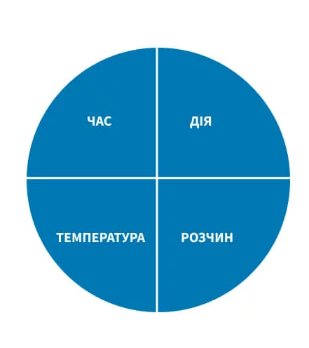 Чотири параметри пов’язані між собою та впливають один на одного. Якщо у схемі СІП миття змінюється якийсь один, це компенсується рештою трьох.