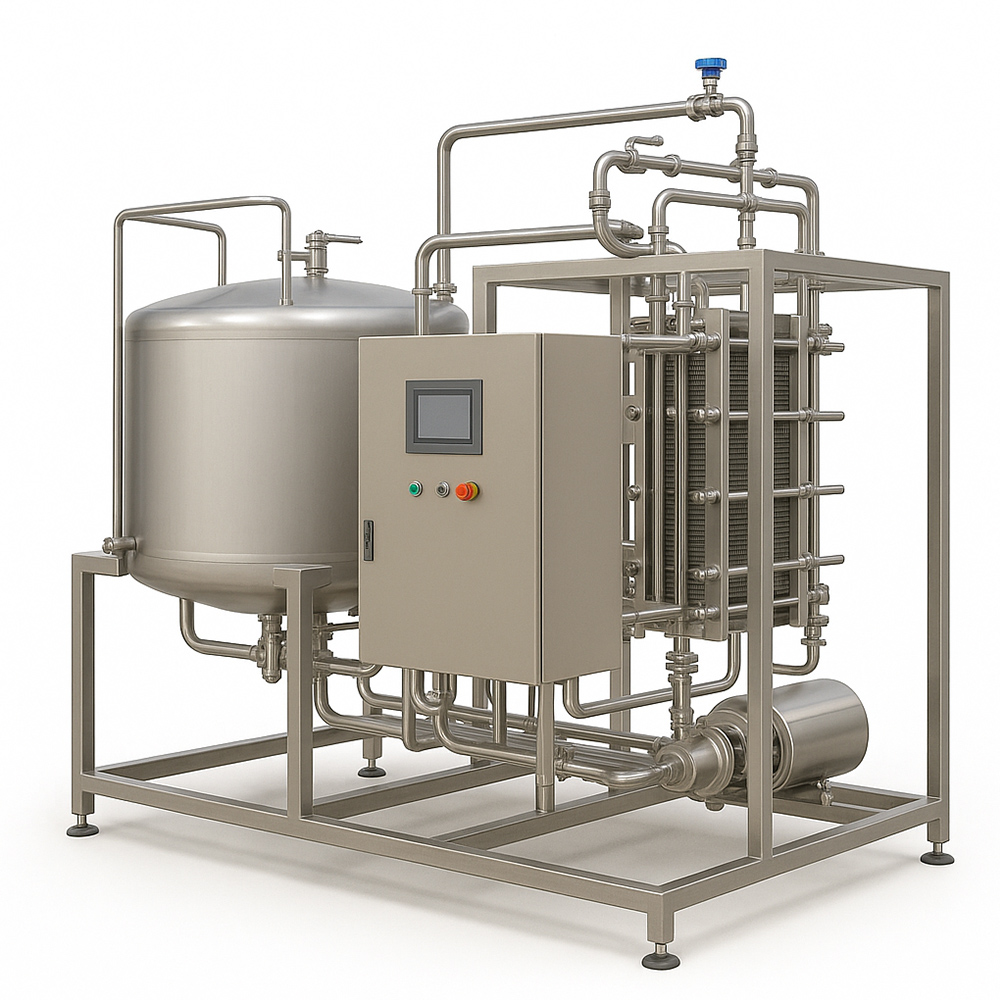 Залежно від застосування, установка може бути оснащена пластинчастими, трубчастими або скребковими теплообмінниками, що забезпечує оптимальну ефективність теплопередачі для продуктів різної в’язкості. Кожна система налаштовується відповідно до параметрів виробництва й може працювати в різних режимах температури та часу — зазвичай 72 °C або 95 °C протягом 15 або 30 секунд, або за індивідуальним запитом.